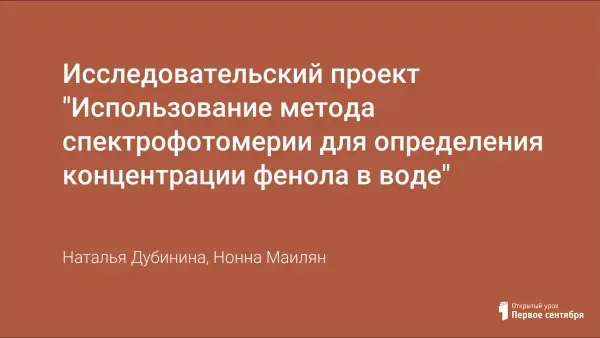 Исследовательский проект "Использование метода спектрофотомерии для определения концентрации фенола в воде"
