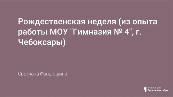 В данной статье предлагается описание проведения Рождественской недели, которая прошла в нашей гимназии в конце декабря минувшего года. Будем рады поделиться нашим опытом.