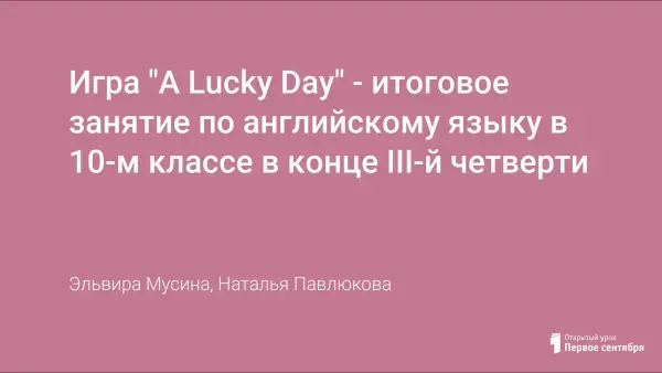 Игра "A Lucky Day" - итоговое занятие по английскому языку в 10-м классе в конце III-й четверти