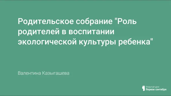 Родительское собрание "Роль родителей в воспитании экологической культуры ребенка"
