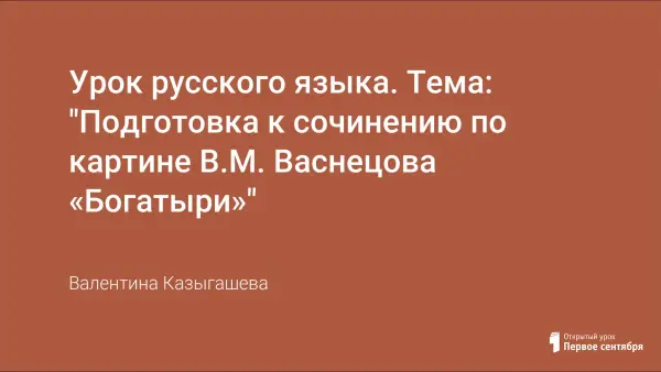 Урок русского языка. Тема: "Подготовка к сочинению по картине В.М. Васнецова «Богатыри»"