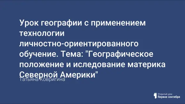 Урок разработан с применением технологии личностно-ориентированного обучения с целью актуализации субъектного опыта учащихся для включения их в активную деятельность по изучению физико-географического положения материка Северной Америки.