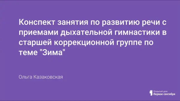 Занятие рассчитано на детей 6-7 лет, имеющих недостатки интеллектуального развития по типу ЗПР, стойкое недоразвитие познавательной деятельности и речевые нарушения. В связи с использованием здоровьесберегающей практики, которая направлена на развитие психического и физического здоровья детей, в занятие включены элементы дыхательной гимнастики.