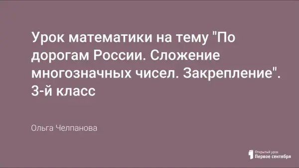 Урок-путешествие по городам России. Учащиеся закрепляют умения выполнять действия с многозначными числами в задачах, получают положительную мотивацию к учению, развивают обоснованность суждений, знакомятся с известными учеными в области математики.