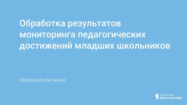 В материале предлагается разработанная автором табличная форма представления результатов мониторинга достижений младших школьников, позволяющая повысить их наглядность и, тем самым, снизить трудоемкость этапа обработки и анализа результатов.