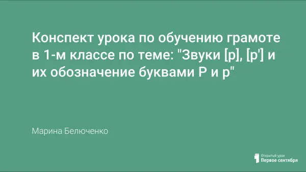 Цель урока — научить детей на слух различать новые сонорные звуки [р], [р’] и обозначать их при чтении буквами Р и р, а также продолжить обучение детей чтению слогов и слов с новой буквой, развитие их фонематического слуха, памяти, внимания, воспитывать культуру труда.
