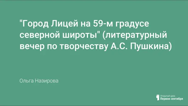 В работе представлен сценарий литературного вечера по творчеству А.С. Пушкина. Материал содержит сведения, позволяющие учащимся познакомиться с периодом обучения Пушкина в Лицее Царского Села, так как именно этот период вызывает неподдельный интерес у подростков.
