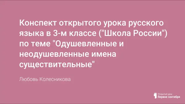 Конспект открытого урока русского языка в 3-м классе ("Школа России") по теме "Одушевленные и неодушевленные имена существительные"