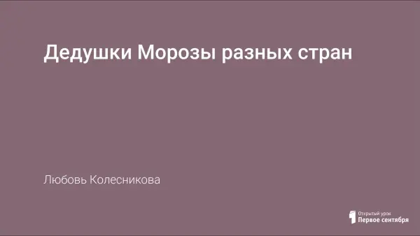 Внеклассное мероприятие в наглядной, игровой форме знакомит учащихся с зарубежными «Дедами Морозами», национальными особенностями празднования Нового года в странах, расширяет кругозор. Цель: развитие познавательной деятельности, повышение интеллектуального уровня учащихся.