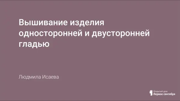 Урок знакомит с техникой вышивания изделий односторонней и двусторонней гладью. Учащиеся знакомятся с историей вышивки, выполняют вышивку односторонней и двусторонней гладью.