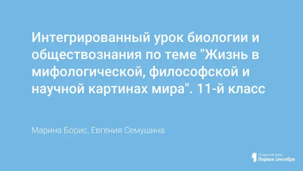 Интегрированный урок биологии и обществознания по теме "Жизнь в мифологической, философской и научной картинах мира". 11-й класс