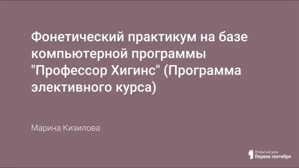 Программа для проведения курсов по выбору в 9–11-х классах, призванных развивать и поддерживать на высоком уровне произносительные навыки учащихся. Может помочь при организации индивидуальных консультаций в 5–11-х классах. Она рассчитана на 17 часов, хотя время на прохождение некоторых разделов может быть увеличено. Положительные моменты: индивидуальный режим работы; ученик слышит свою и эталонную речь и видит на мониторе их графики.