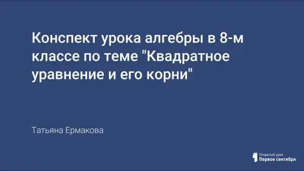 Данный урок проводится с использованием информационных технологий, он призван дать понятие о квадратном уравнении и его корнях и является подготовительным уроком для изучения темы «Неполные квадратные уравнения».