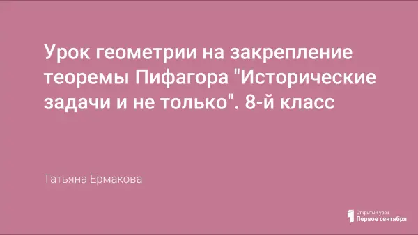Урок-закрепление проводится с ИКТ, знакомит учащихся с историческими задачами на применение теоремы Пифагора.