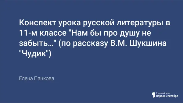 Данный урок входит в систему уроков по творчеству В.М. Шукшина в 11-м классе. Предварительно учащиеся знакомятся с биографией В.М. Шукшина. Для глубокого анализа взят один рассказ, позволяющий представить своеобразие шукшинских героев. Урок предполагает предварительную работу учащихся (создание небольшого видеофильма, иллюстраций к произведению, работу над выразительным чтением). Вопросы для обсуждения подобраны таким образом, чтобы ученик смог выразить своё мнение, поделиться жизненными наблюдениями.