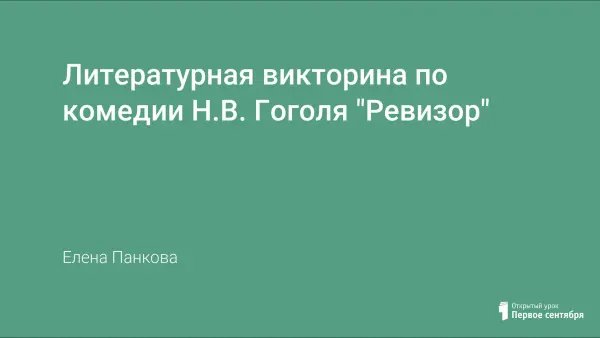 Викторина ориентирована на учащихся 8-го класса, изучивших комедию Н.В. Гоголя "Ревизор", и проводится обычно на заключительном уроке. Мероприятие можно проводить как внеклассное. В игре участвуют две команды. В роли жюри может выступать учитель. Круг вопросов, обсуждаемых в процессе викторины, достаточно широк - это история написания и постановки пьесы, словарная работа, цитирование, характеристика персонажей пьесы. Подобная форма проведения урока способствует повышению интереса учащихся к изучению русской литературы.