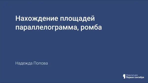 Данный урок предназначен для обучения школьников умению вычислять площади параллелограмма и ромба.