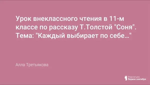 Урок знакомит учащихся с понятиями «литература с модернистской доминантой», «жестокая проза», ее существенными признаками. На уроке рассказывает об особенностях творчества представителя направления, которое в литературе называется «жестокая проза». Как заметил А.Генис, «Толстая отнюдь не добрый волшебник, и сказки у нее с плохим концом. Мир страшен сам по себе. Жизнь изначально трагична уже потому, что подчиняется времени».