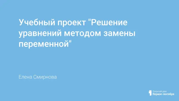 Одним из способов организации исследовательского труда школьников в процессе учения является метод проектов. В данной работе показано использование метода проектов при обобщении и углублении знаний, полученных на уроках математики. Учебный проект "Решение уравнений методом замены переменной" был выполнен как итоговая работа по предмету "Математический практикум" учениками 11-го класса с углубленным изучением математики.