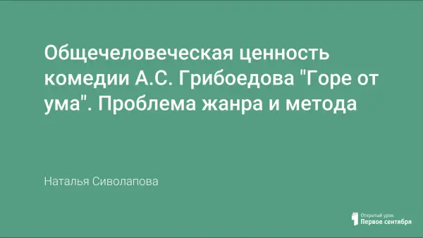 Итоговый урок по комедии А.С. Грибоедова «Горе от ума». Цель: показать общечеловеческую ценность данного произведения и его тесную взаимосвязь с мировой литературой: трагедией Софокла «Царь Эдип», комедией Бомарше «Женитьба Фигаро», драмой В.Шекспира «Гамлет». На уроке идёт разговор об особенностях жанра: почему «Горе от ума» не трагедия, а комедия?