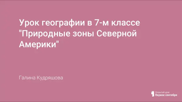 Цели урока: с помощью работы в группах, используя приём самостоятельного изучения материала, сформировать у обучающихся представление об основных природных зонах Северной Америки, формировать умение работать с картами, материалами учебника и дополнительной литературой; на основе изученного материала составлять таблицы и презентовать полученные результаты. Итогом работы является представление каждой группой наработанного материала по выбранной природной зоне. Используя готовый план, каждый учащийся составляет таблицу "Природные зоны Северной Америки".