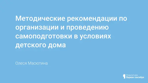 Понятие "самоподготовка" предполагает самостоятельную работу воспитанника под руководством воспитателя. Самоподготовка является специфическим режимным моментом в условиях детского дома. В этой работе органически сочетаются образовательные и воспитательные цели и задачи: это не только форма проведения и закрепления пройденного материала на уроке. В ней содержится значительный воспитательный потенциал - развитие у воспитанников навыков самостоятельного учебного труда, умения самим добывать знания, работать с книгой, справочной и другой дополнительной литературой, используя мультимедийную продукцию.