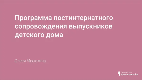 Наибольшее количество детей выпускается из детских домов в возрасте 15–16 лет. Их жизненный опыт очень мал, часто полностью отсутствуют навыки, необходимые для самостоятельной жизни: дети не умеют обустроить свой быт, распоряжаться деньгами, самостоятельно организовать досуг. Поэтому необходимо (2–3 года) после выхода из детского дома оказывать воспитанникам поддержку в виде постинтернатного сопровождения, которое поможет им успешно адаптироваться в новой социальной среде, выстроить конструктивную стратегию самостоятельной жизни, создать новые и крепкие социальные контакты как с близким окружением, так и с государственными структурами. Программа рассчитана на 3 года.