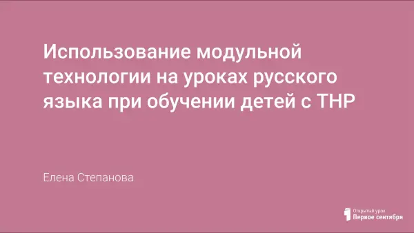 Модульная технология на уроках русского языка при обучении детей с тяжёлыми нарушениями речи предстаёт как личностно-ориентированная технология, базирующаяся на дифференцированном подходе, на основе активизации деятельности учащихся и повышения эффективности учебного процесса.