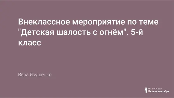 В данной методической разработке внеклассного мероприятия для обучающихся 5-х классов отражены вопросы по профилактике пожарной безопасности. Этот материал будет полезен для школьников всех возрастных категорий, а также поможет педагогам и организаторам лучше познакомить ребят с нелёгкой службой инспекторов ГПС.