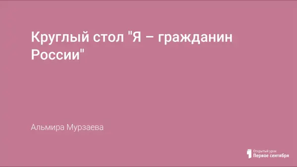Круглый стол "Я - гражданин России" имеет большое воспитательное значение. Привитие чувства любви к Родине - это не однодневный и не сиюминутный процесс, над данной проблемой стоит трудиться кропотливо, упорно. Круглый стол "Я - гражданин России" учит детей размышлять, учит выработать своё собственное мировоззрение, осознать свою причастность к судьбе Родины.