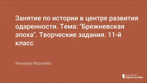 Занятие посвящено брежневской эпохе. Рассмотрено смещение Н.С. Хрущева, партийная номенклатура, концепция развитого социализма, национальный вопрос, экономика, международные отношения, культура и духовная жизнь.