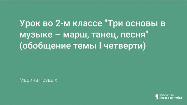 Урок проводится в конце I четверти и обобщает знания о марше, танце, песне; способствует активному накоплению интонационно-слухового запаса учащихся. Занятие проводится в игровой форме – путешествие по стране Музыка. Использование на уроке информационных технологий способствует воспитанию музыкального и эстетического вкуса учащихся, интереса и любви к музыке, возникает желание её слушать.
