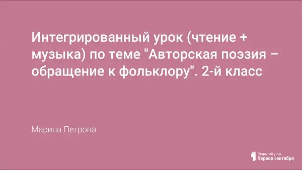Интегрированный урок (чтение + музыка) по теме "Авторская поэзия – обращение к фольклору". 2-й класс