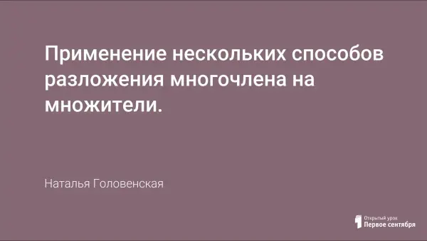 Представлен конспект урока по теме "Применение нескольких способов разложения многочлена на множители".