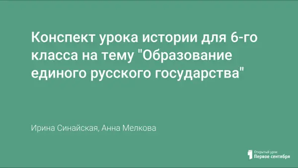Представлена разработка урока по теме "Образование единого русского государства" для 6-го класса.