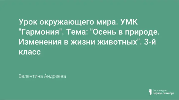 Цель урока: знакомство учащихся с осенними изменениями в жизни животных, формирование учебно-познавательных, информационных, коммуникативных, личностных компетентностей.