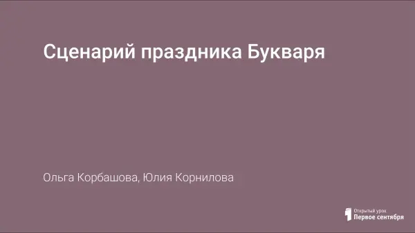 Сценарий Праздника Букваря предназначен для двух первых классов. Сценарий состоит из двух частей: стихотворного монтажа и концертной части. В начале праздника все дети выстроены на сцене. В стихотворном монтаже участвует каждый ученик. В концертной части роли ведущих и Шапокляк исполняют старшеклассники. Сценки, песни и танцевальные номера исполняют первоклассники.