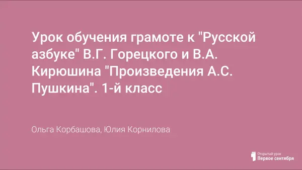 Урок обучения грамоте к "Русской азбуке" В.Г. Горецкого и В.А. Кирюшина "Произведения А.С. Пушкина". 1-й класс
