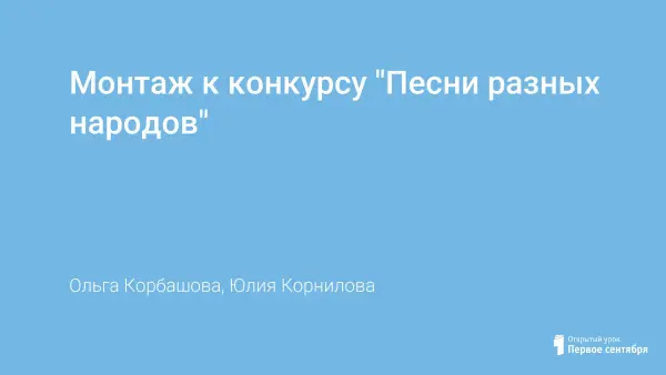Цели конкурса: воспитание у детей патриотизма, уважения и интереса к истории и традициям нашей многонациональной Родины; воспитание гражданственности; воспитание толерантности; приобщение детей к истокам народных культур. Монтаж к конкурсу составлен на основе стихотворений как известных авторов, так и четверостиший собственного сочинения. Монтаж универсальный и может быть использован учителями на классных часах, тематических линейках, фестивалях, праздниках и др.