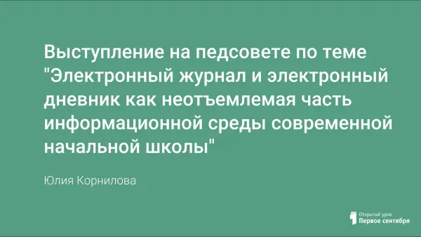 Выступление на педсовете подготовлено из опыта работы с электронным дневником и журналом ГШИС (Городская Школьная Информационная Система г.Москвы) Единая информационная среда для эффективного взаимодействия учителей, учеников и родителей. Выступление освещает возможности электронного журнала, как современного средства информирования и общения пользователей, его плюсы и минусы, возможности электронного дневника для учеников и родителей, рассказывает о психологии электронного дневника и журнала.