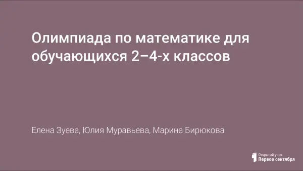Одной из наиболее эффективных форм внеклассной и внешкольной работы, способствующих повышению интереса школьников к знаниям, развитию их способностей, являются олимпиады. В печатной работе представлены олимпиадные задания по математике для обучающихся 2–4-х классов.