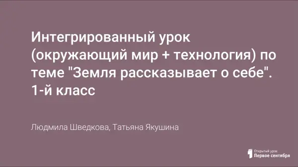 Интегрированный урок (окружающий мир + технология) по теме "Земля рассказывает о себе". 1-й класс