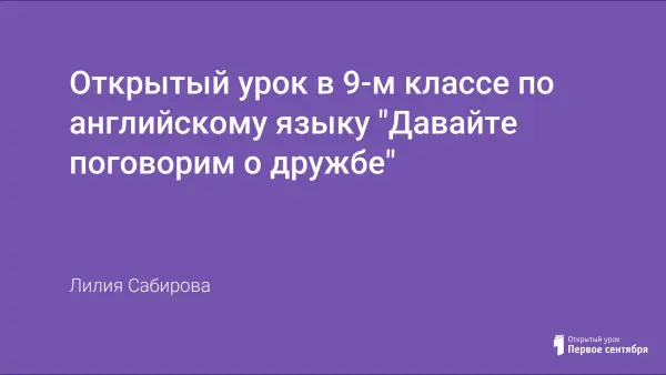 Открытый урок в 9-м классе по английскому языку "Давайте поговорим о дружбе"