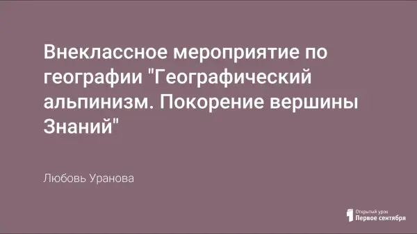 навыков общения, привитие интереса к предмету географии и любви к природе. Мероприятие построено в форме соревнования. В работе представлены 8 различных по