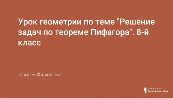 Цель: научить детей применять теорему Пифагора при решении различных задач, логически думать. На уроке применяется презентация, которая расширяет кругозор у учащихся по теме.