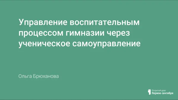 Ребенок, как и взрослый, живет в реальной жизни, и поэтому он должен иметь право участвовать в ее преобразовании. Статья посвящена ученическому самоуправлению как одному из вариантов управления процессом воспитания в гимназии.