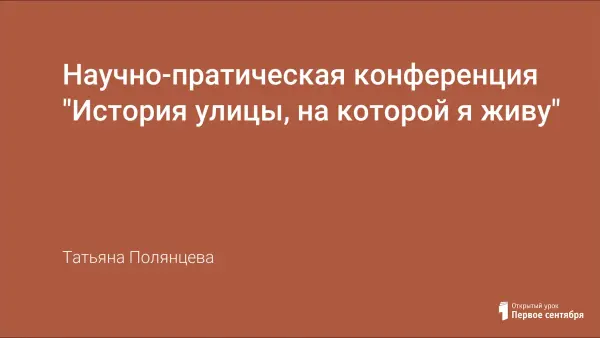 Цель работы: повысить интерес к истории большой и малой родины через историю моей улицы; показать, как важно знать историю своих родных мест; воспитывать в себе и других любовь к своей Родине и гордость за нее.