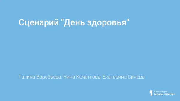 Предлагаемый сценарий «Дня здоровья» школ решает задачи: популяризации здорового образа жизни среди детей, родителей и педагогов, воспитания потребности в постоянном физическом самосовершенствовании.