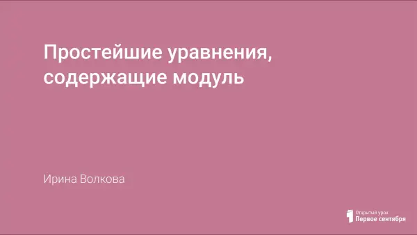 Цель урока: повторить понятие модуля числа, разобрать метод решения простейших уравнений, содержащих модуль; научить решать уравнения, развивать интерес к предмету. Этот урок учит детей анализировать, обобщать, делать выводы. Отвечая на вопросы учителя, учащиеся сами делают вывод о количестве корней, находят алгоритм решения уравнений, содержащих модуль. Ученики активно работают, и их интерес к изучению данной темы не пропадает до конца урока.