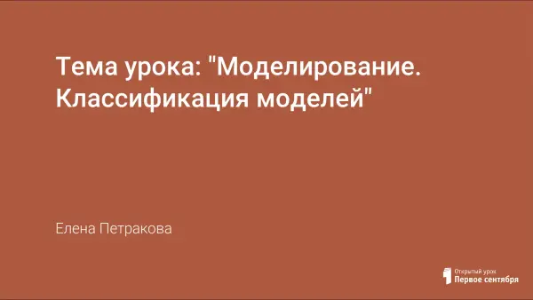 Вводный урок по теме "Моделирование". За основу взята классификация по учебнику Н.В. Макаровой.